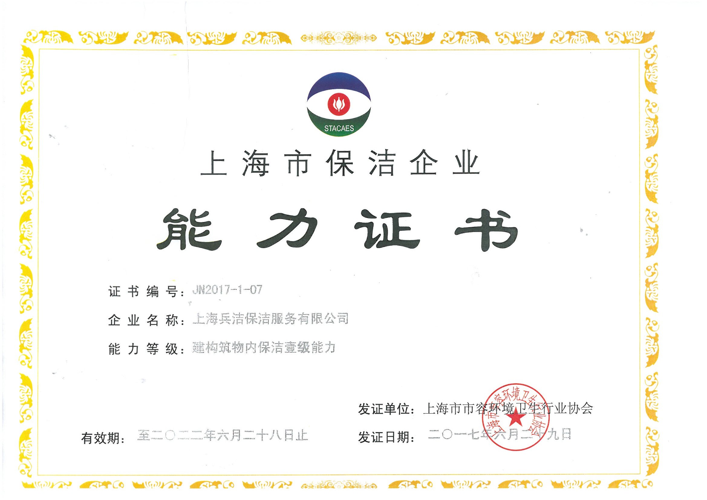 上海兵潔環境服務有限公司成立于2005年9月,專業從事外墻清洗、內(外)墻粉刷、開荒清潔、石材翻新養護、外墻維修、地毯清洗,辦公樓、住宅樓、商場、工廠、賓館、醫院、展覽展示館等各類物業場所的日常保潔服務。公司現有員工1200余人,服務項目200多個,其中外墻清洗服務面積1500多萬平方米,日常保服務面積500多萬平方米。公司秉承“誠信務實、安全高效、吃苦耐勞、勤勉細致” 的企業作風和“專業來自敬業,服務創造品質”的基本理念,全面導入ISO9001:2008質量管理體系認證證書,ISO14001:2004環境管理體系認證證書,OHSAS18001:2007